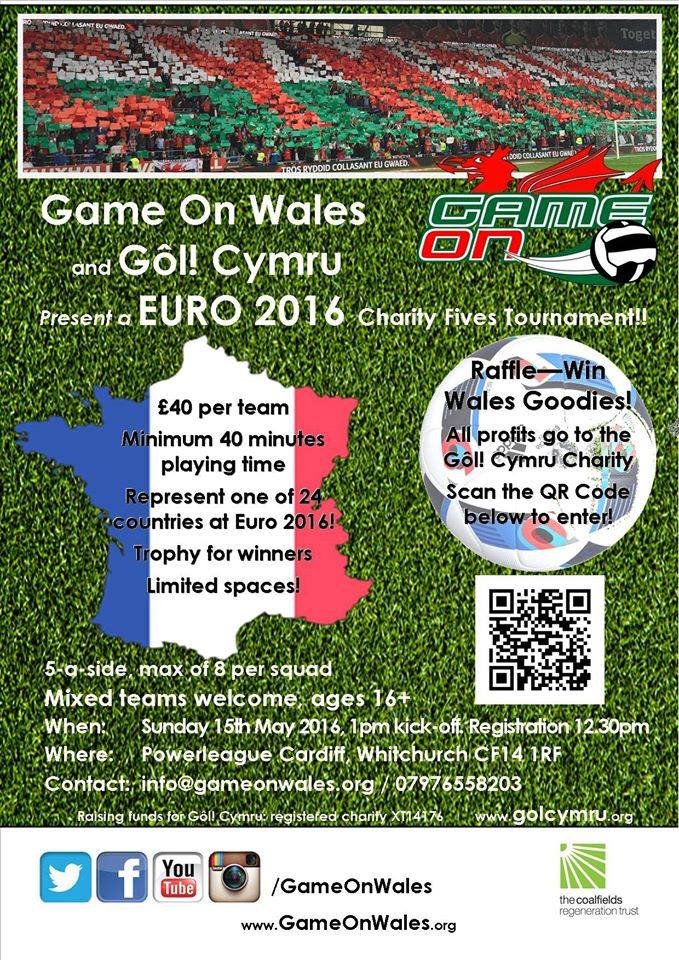 Many thanks to everyone who made yesterday’s Euro 2016 tournament at Lucozade Powerleague Cardiff a success, especially Game On Wales for their help in organising, our sponsors 10 Feet Tall and all those who provided gifts for the raffle, Spirit of ’58 – Welsh Football T-Shirts/Merchandise, Edwards Coaches, CBFitness, Sports Xtra (Head Office), St David’s Press. Through your kindness we have raised more than £900 for underpirvileged and sick children.