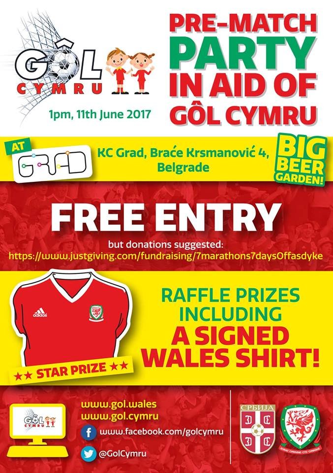 There is a big beer garden and plenty of indoor space and we will ensure a top playlist – feel free to suggest any tunes and we’ll put them on. Again, donations are welcome. We’ll be hosting a raffle with a SIGNED WALES SHIRT as the main prize.