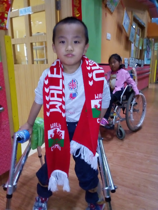 During Wales’ appearance in the China Cup, Gôl Cymru visited the Guangxi Yun Cai Centre in Nanning. It is a truly inspirational place which caters for children with cerebral palsy in the Guangxi province. Without this centre, which runs entirely on voluntary funding, many of these children would have been abandoned. Their vision is to make the children as independent as possible and focuses on developing their bodies, minds and creative talents. Thanks to your donations, Gôl Cymru was able to donate £700 to help buy specialist rehabilitation equipment.